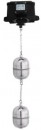 上圖兩浮球上方為輕球,下方為重球。當液體液位低於下方重球,重球重量下拉連條,接線盒中的控制開關感應動作。